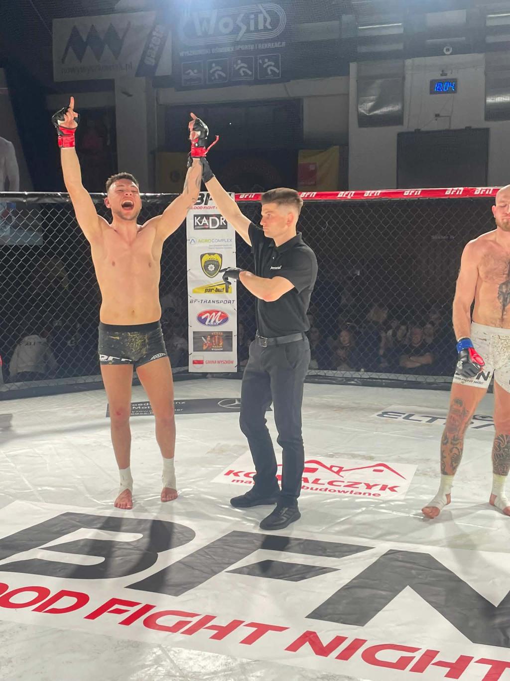Dominik Gręda z klubu Victoria Ostrołęka ma za sobą udaną walkę zawodową. Na gali BLOOD FIGHT NIGHT w Wyszkowie ostrołęczanin pokonał Dmytra Zielynskyego z warszawskiego klubu Aligatores Fight Club.
