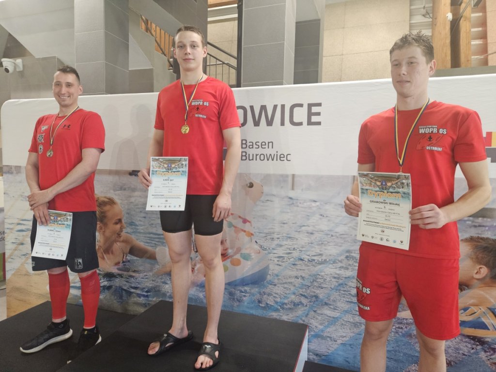 Jednym z najjaśniejszych punktów zawodów był występ męskiej sztafety w kategorii seniorów. Na dystansie 4x50 m ratowanie manekina z pasem zespół w składzie: Igor Łada, Mikołaj Grabowski, Bartosz Micewicz oraz David Modzelewski wywalczył znakomite II miejsce, ustępując jedynie nieznacznym marginesem zwycięzcom.