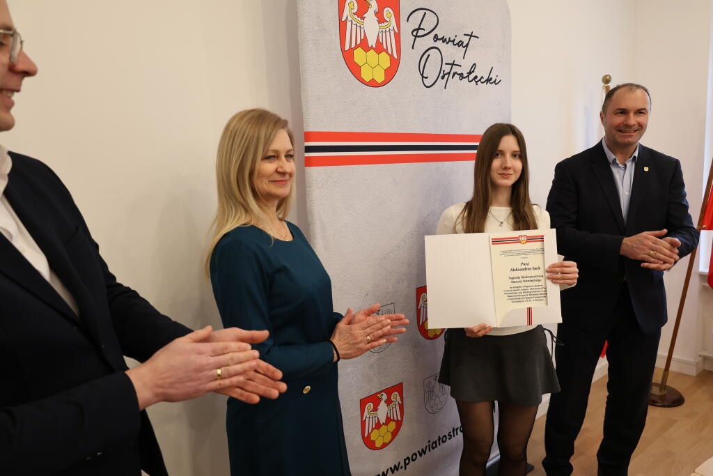 Podczas uroczystości nagrody - w imieniu starosty ostrołęckiego Piotra Liżewskiego - wręczyli: przewodniczący Rady Powiatu w Ostrołęce Adam Białobrzeski, członkowie Zarządu Powiatu Małgorzata Tabaka i Andrzej Szymczyk oraz dyrektor Wydziału Kultury i Rozwoju Starostwa Powiatowego w Ostrołęce Justyna Żerańska.