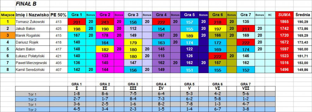 W finale B zwyciężył Tomasz Żukowski (1865 pkt), przed Jakubem Bałonem (1742 pkt) i Markiem Rogalskim (1720 pkt).